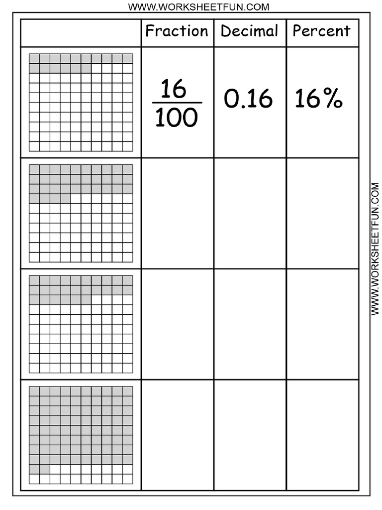 Fraction to percent worksheet free printables