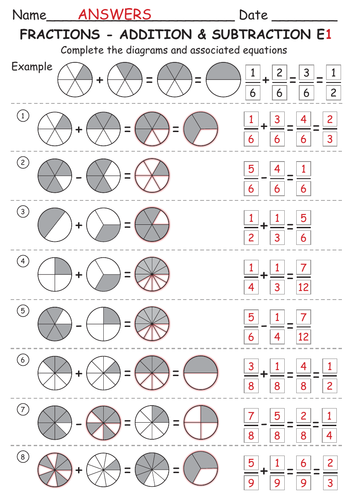 FRACTIONS (E) ADDITION and SUBTRACTION using FRACTION DIAGRAMS