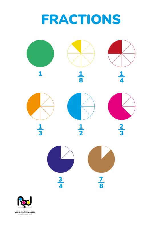 Amazon com: Fractions Poster Fractions Example Chart For Kindergarten