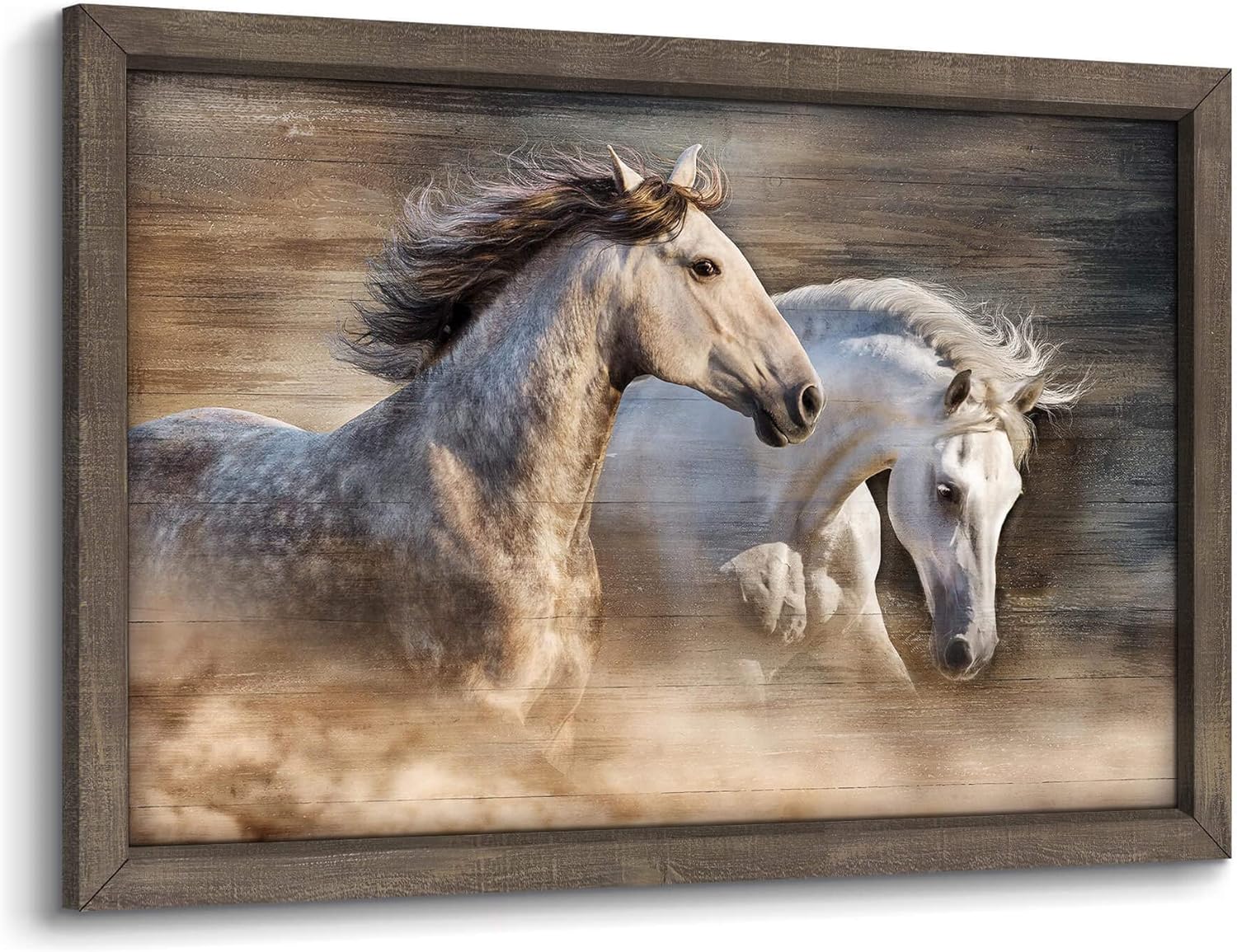 Amazon com: Framed Horse Wall Art Picture: Two Horses Art Running Horse