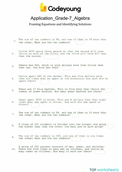 Worksheet on Framing a Formula Free Printable Math Framing Formula