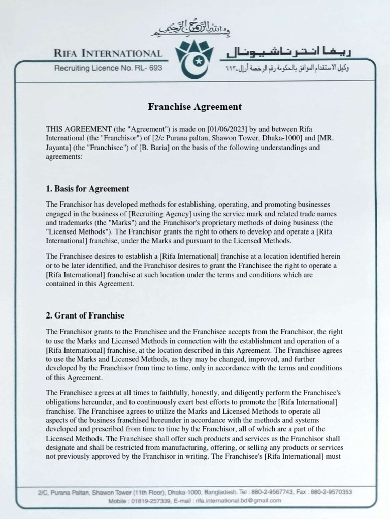 Franchise agreement template in Word and Pdf formats page 2 of 5