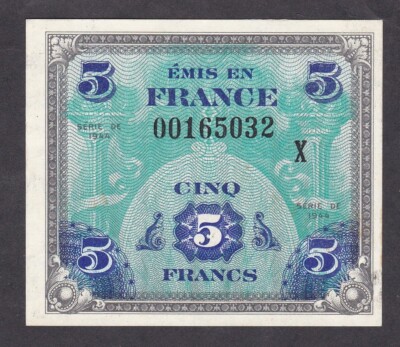 AU Replacement 1944 France AMC 5 Francs P 115a* 00165032 012 3 eBay