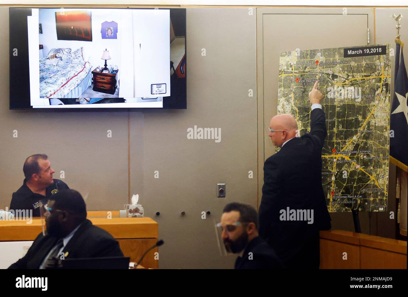 Lead prosecutor Glen Fitzmartin right points to a map where a victim