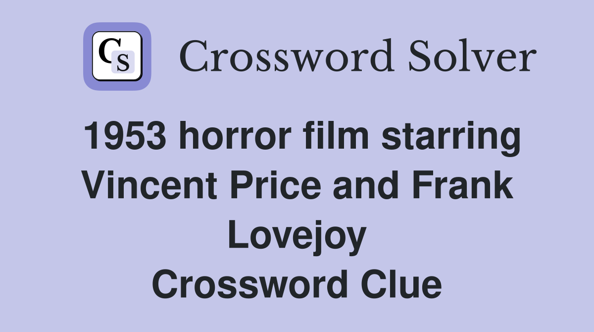1953 horror film starring Vincent Price and Frank Lovejoy Crossword