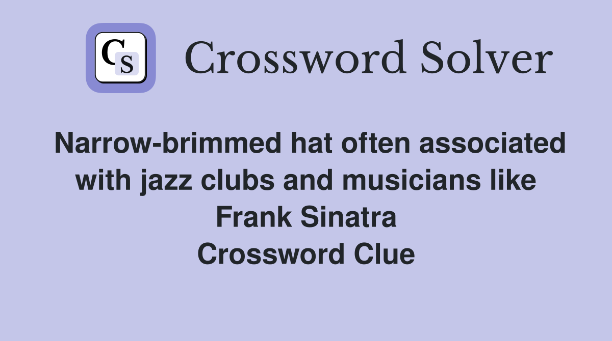 Narrow brimmed hat often associated with jazz clubs and musicians like