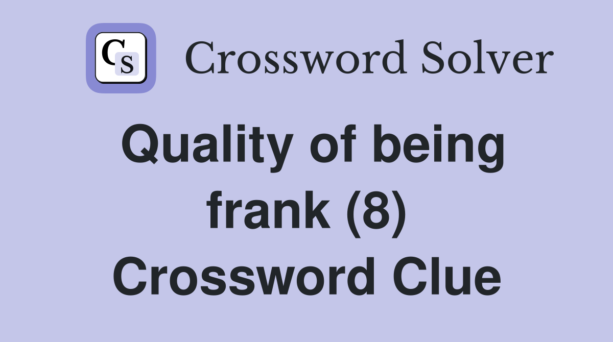 Quality of being frank (8) Crossword Clue Answers Crossword Solver