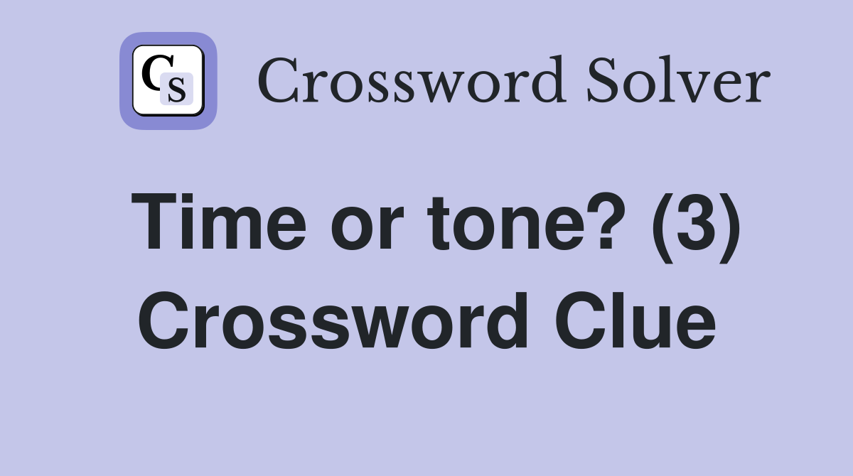 Time or tone? (3) Crossword Clue Answers Crossword Solver