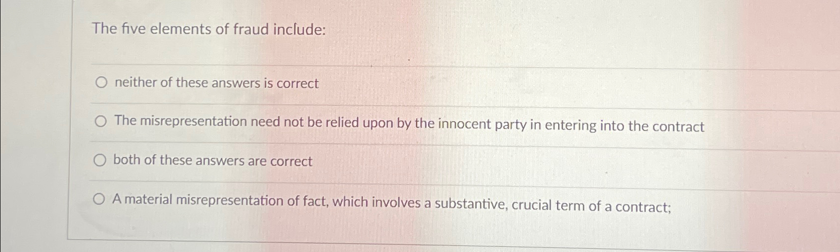Solved The five elements of fraud include:neither of these Chegg com