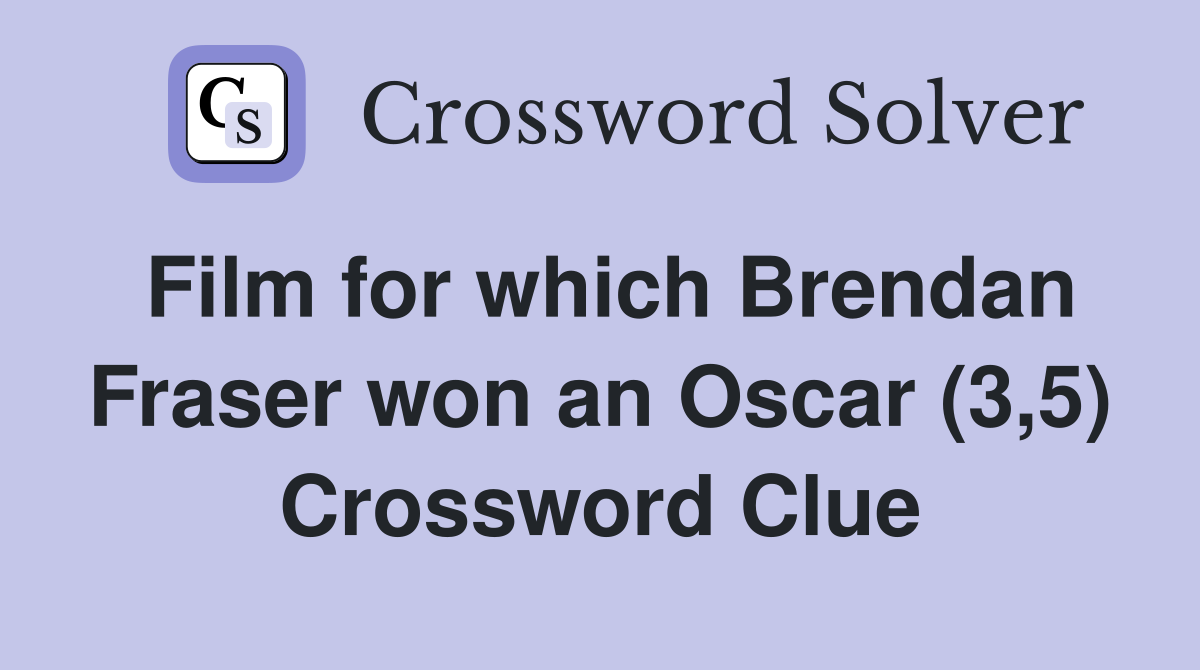 Film for which Brendan Fraser won an Oscar (3 5) Crossword Clue