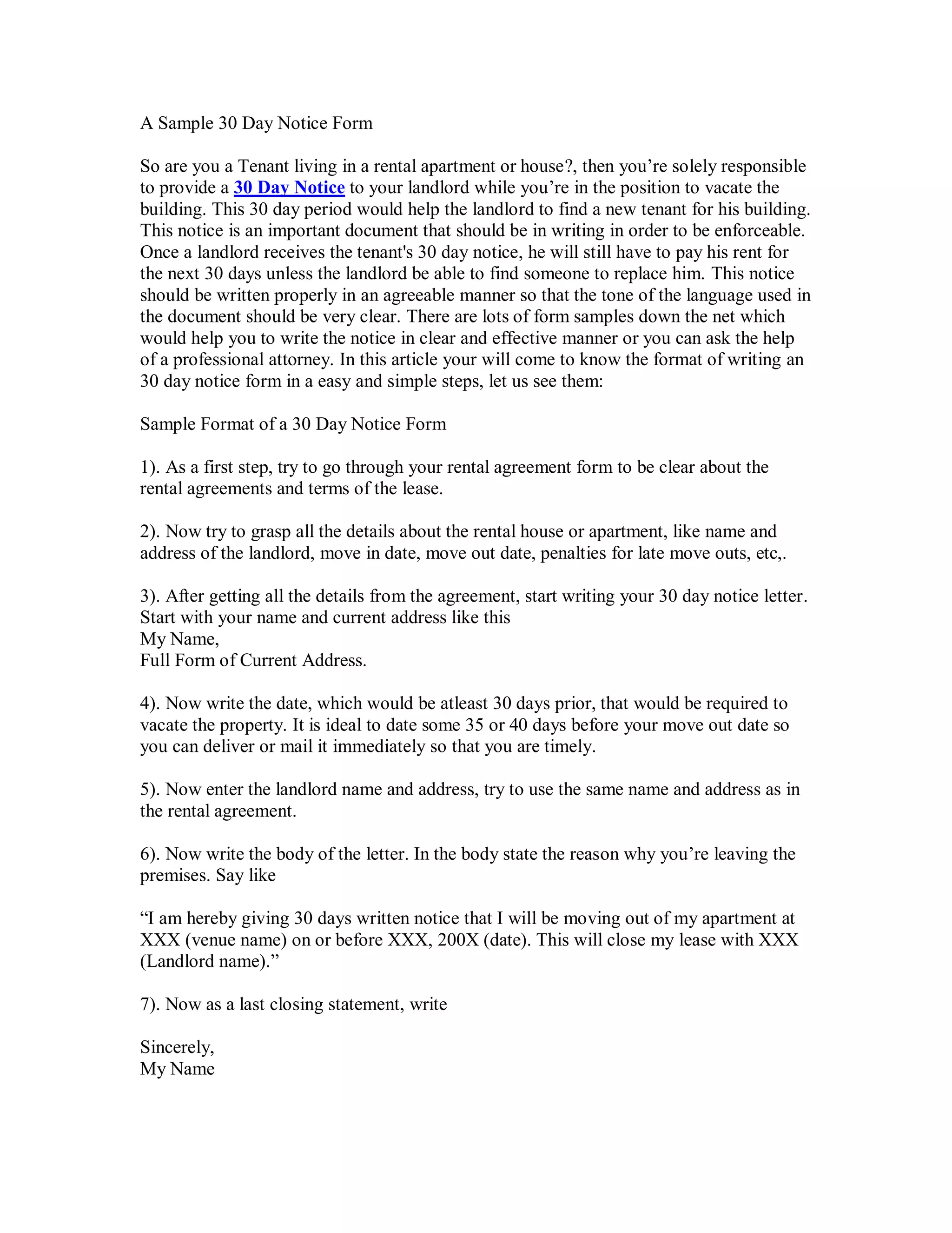 How To Write A 30 Day Notice Letter Free Word Template