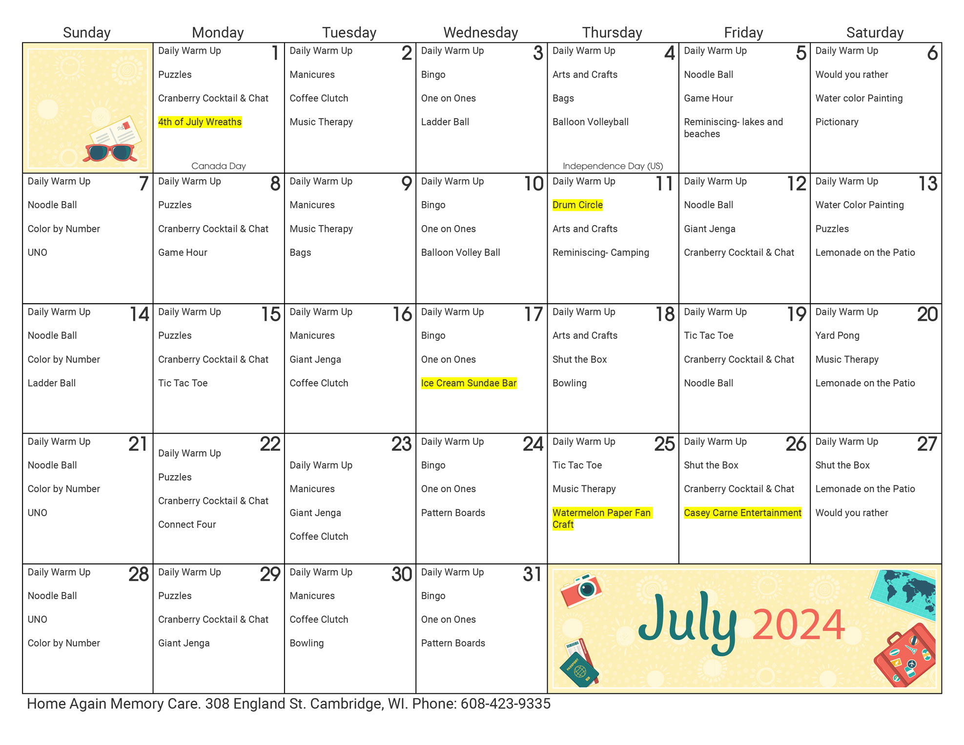 Nursing Home Activity Calendar Template Nursing Home Activity Calendars