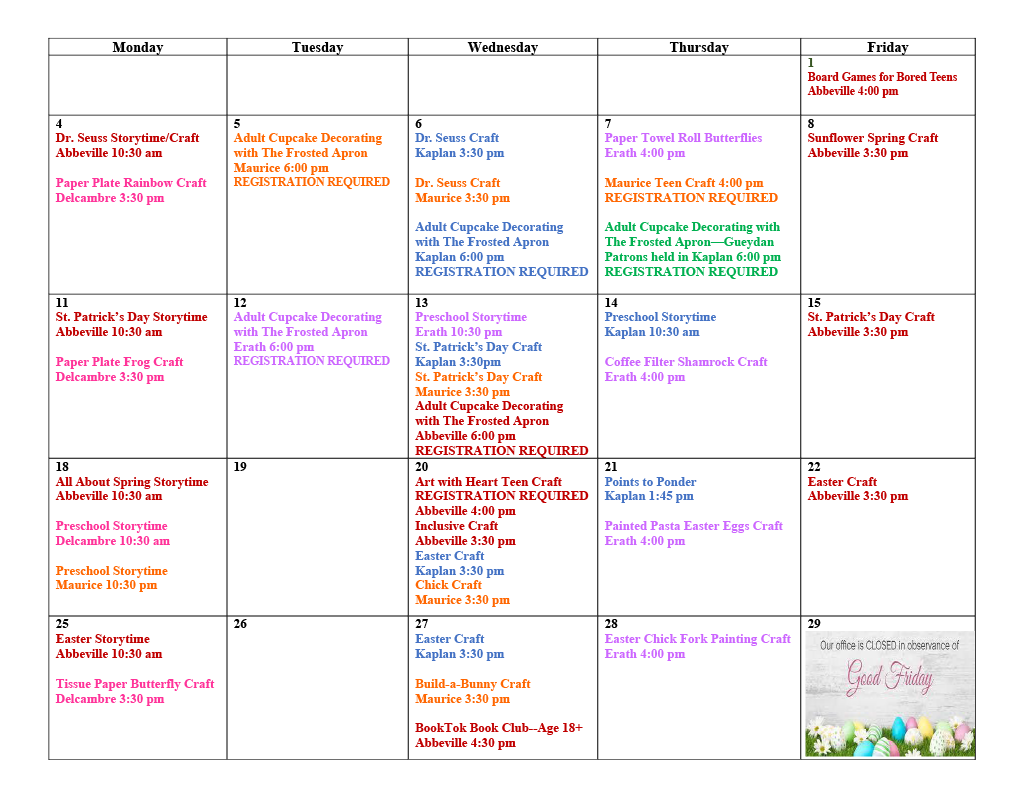 Vermilion Parish Library Calendar of Events Vermilion Parish Library