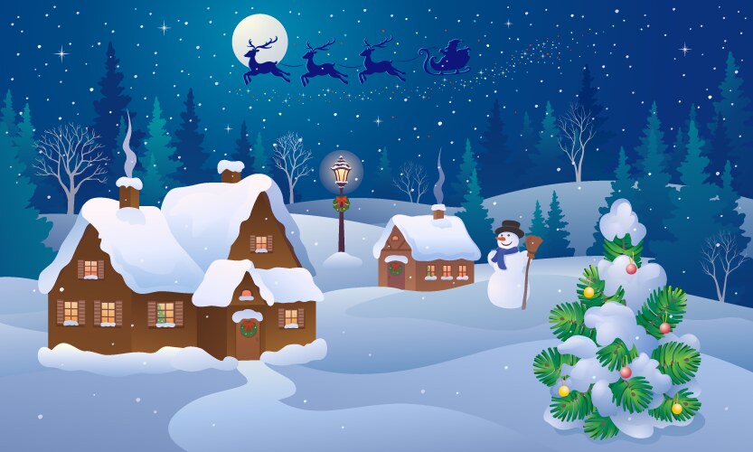 Christmas night scene Royalty Free Vector Image