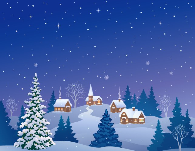 background with christmas tree and night village 36140589 Vector Art at
