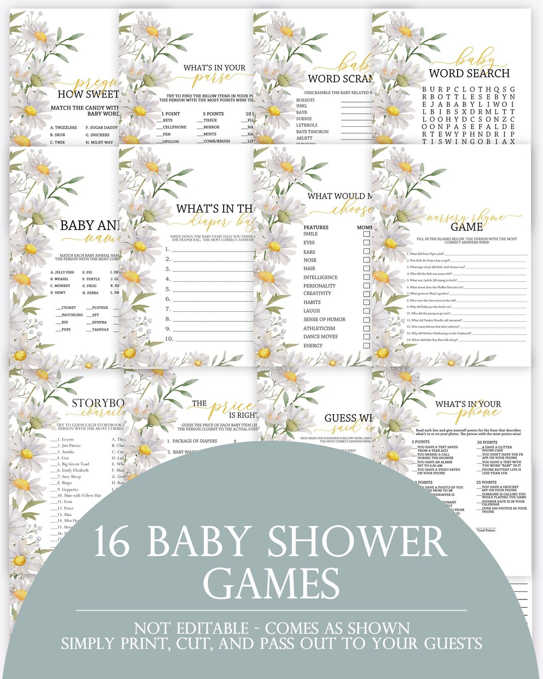 Daisy Baby Shower Games Bundle Wildflower Baby Shower Games Baby