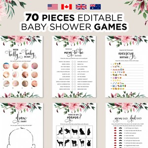 70 Baby Shower Games Editable Baby Shower Game Bundle Etsy