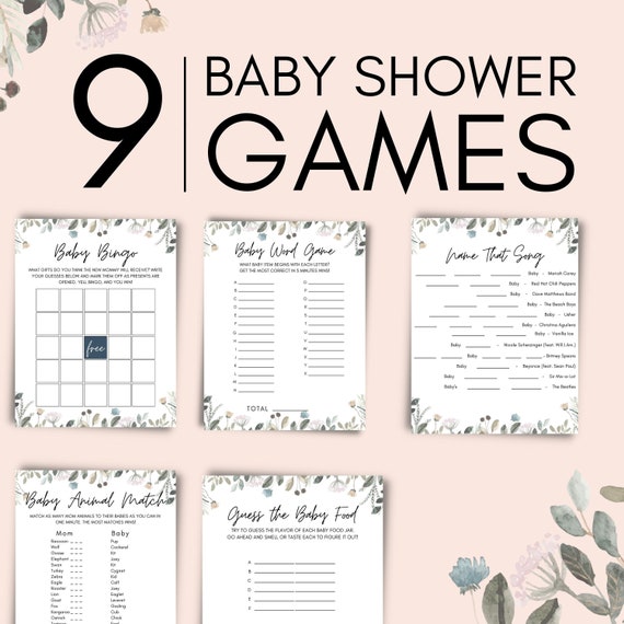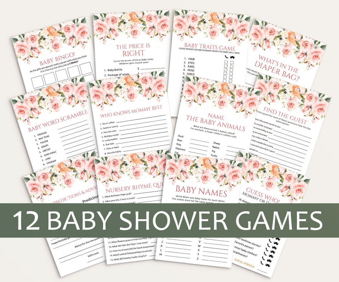 12 Baby Shower Games Baby Shower Games Printable Floral Baby Etsy