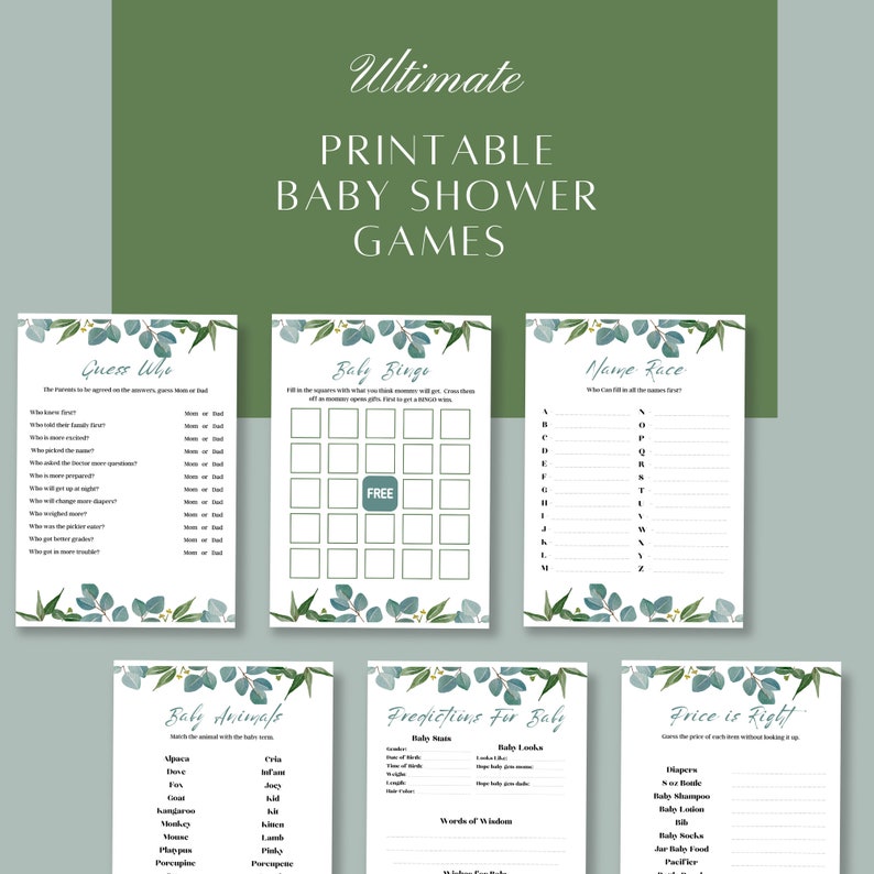 22 Editable Baby Shower Game Bundle Eucalyptus Baby Shower Games