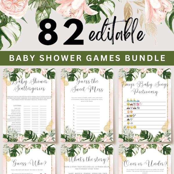 Editable Tropical Baby Shower Games Printable Baby Shower Etsy