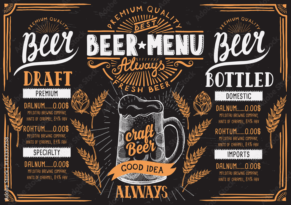 Beer menu restaurant drink template Stock Vector Adobe Stock