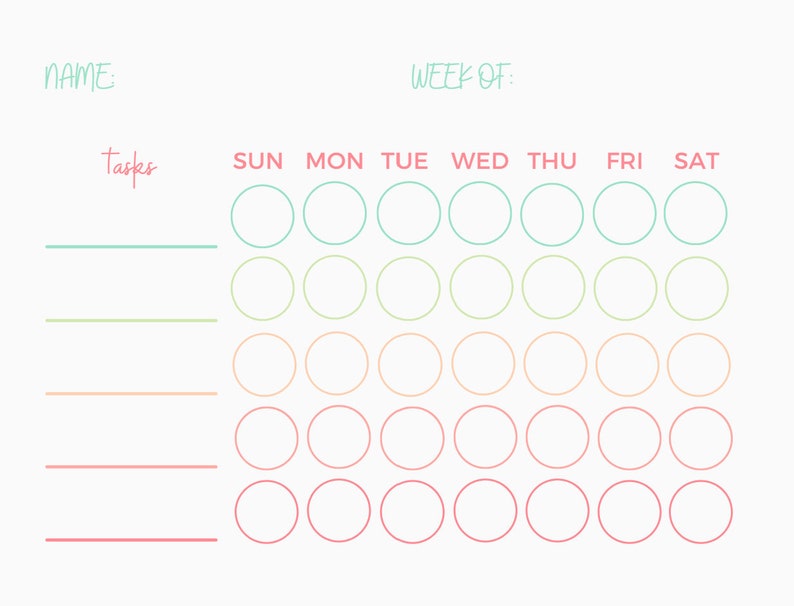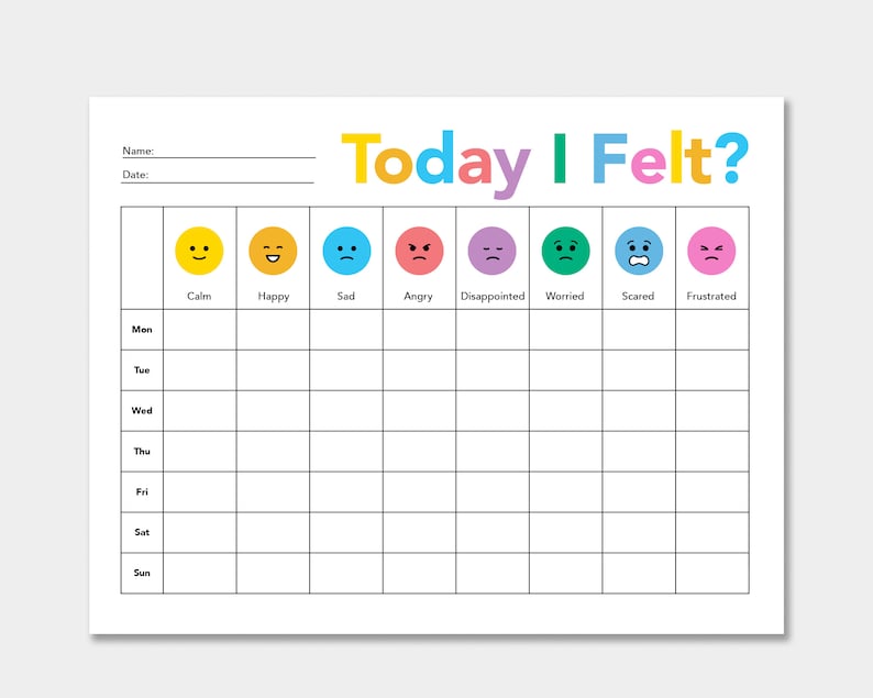 Printable Kids Simple Weekly Mood Tracker Feeling Tracker Colorful