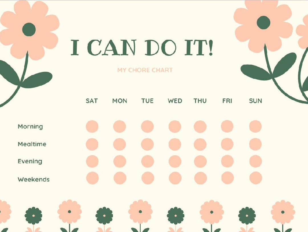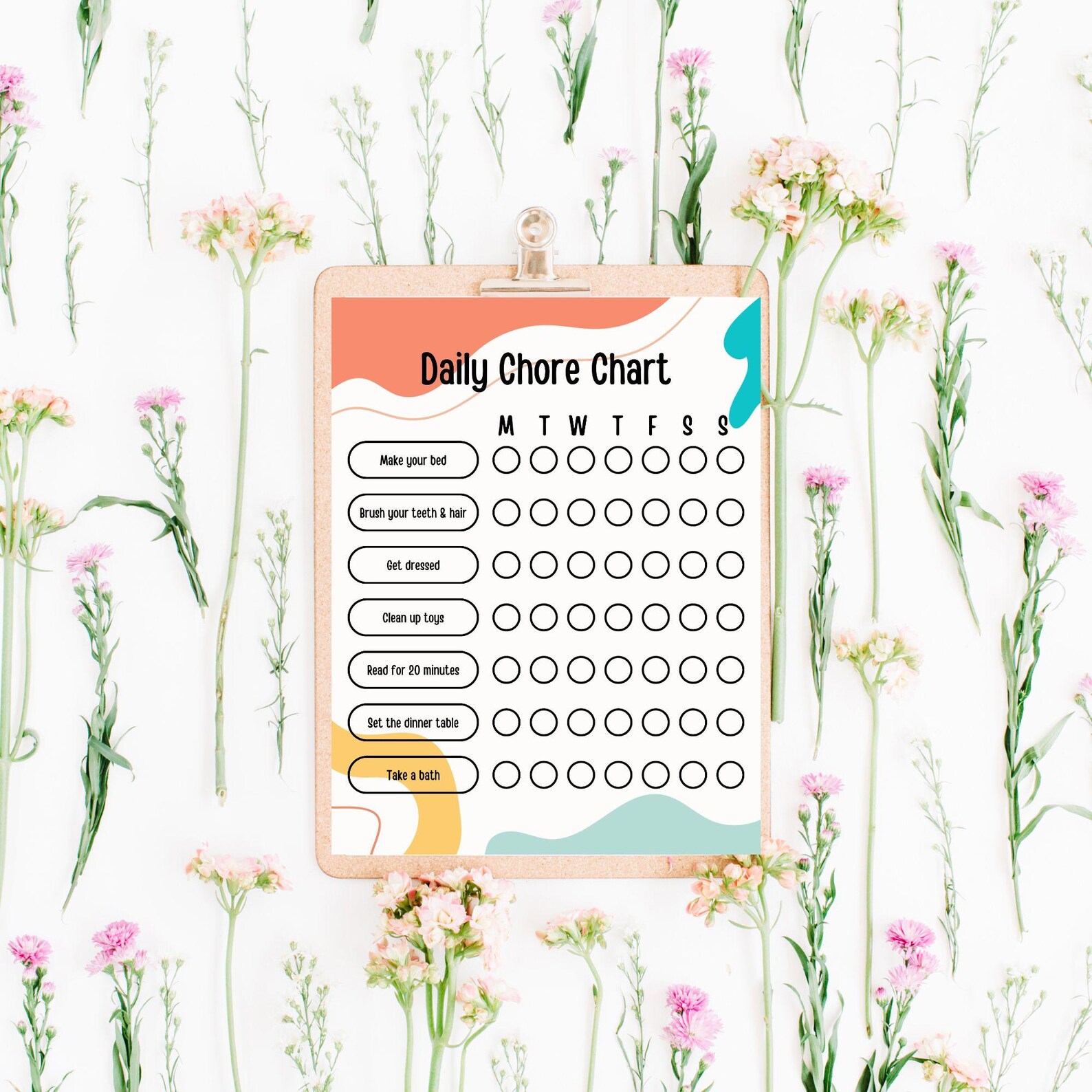 Printable Boho Girls Chore Chart Customizable Kids Responsibility