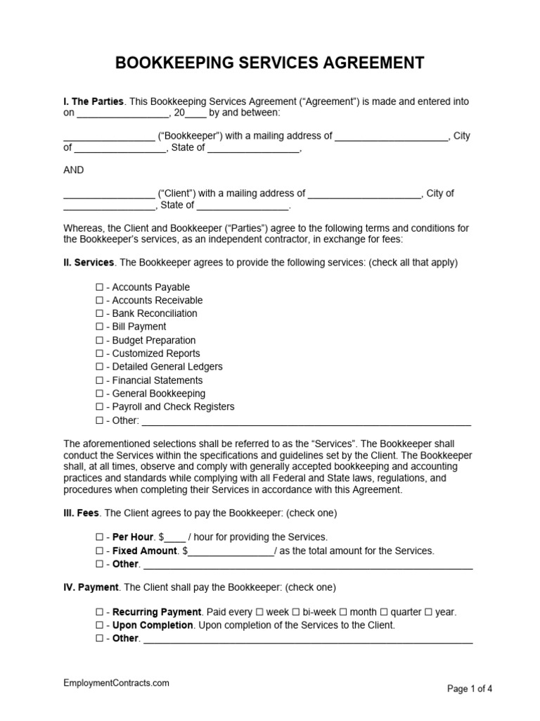 Bookkeeping Contract Agreement Template