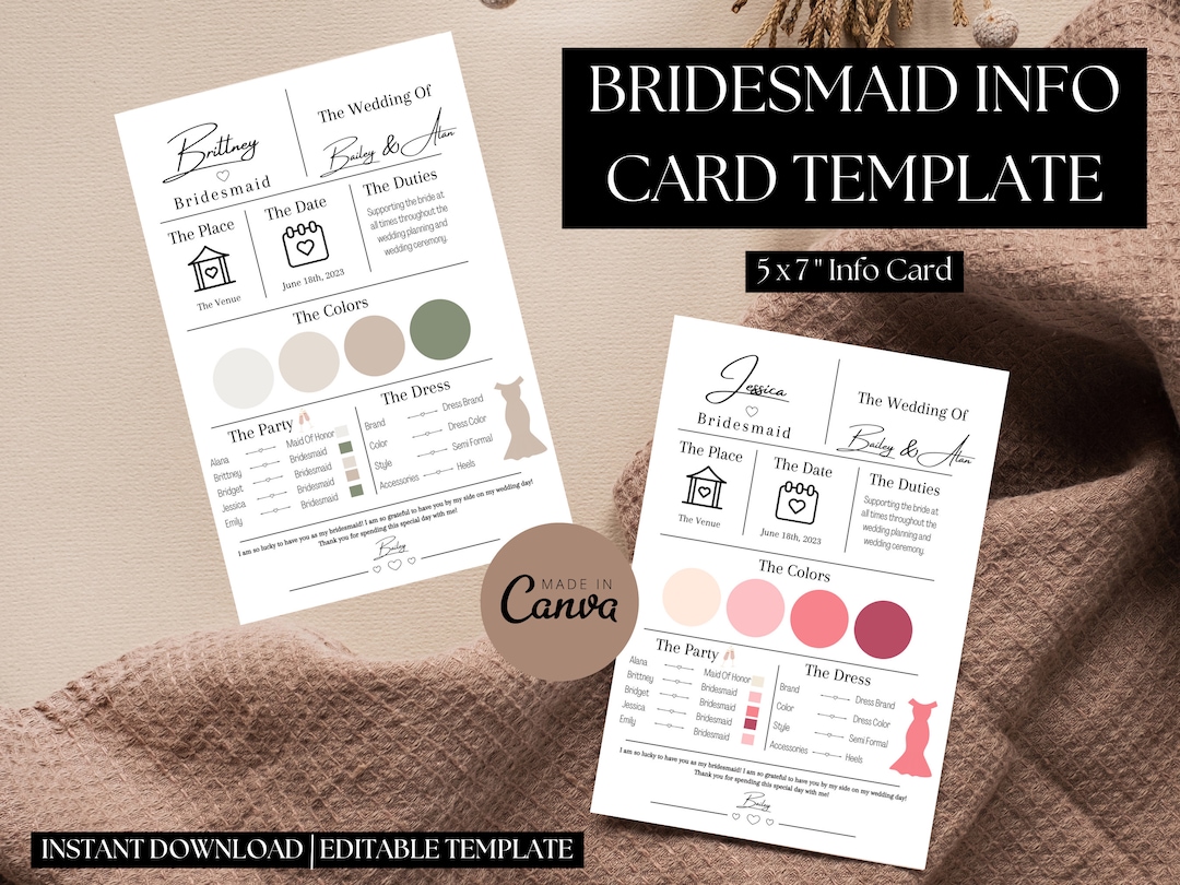 Tara bridesmaid info card template bridal party info card bridesmaid