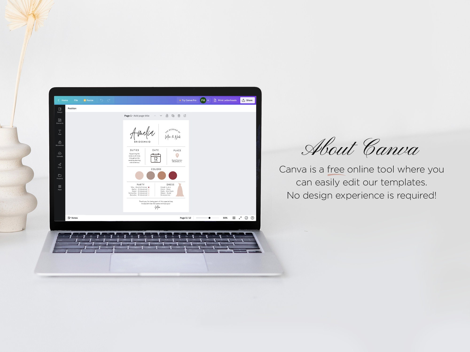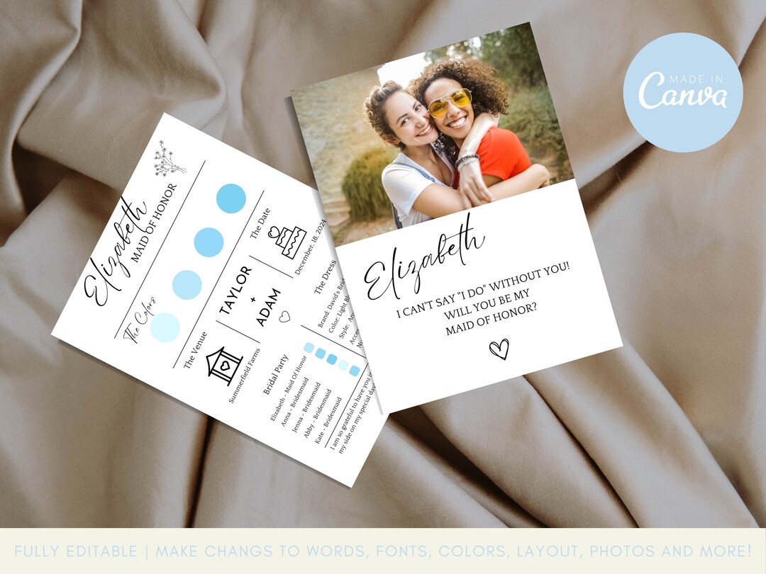 Bridesmaid Info Card Template Bridal Party Info Card Canva Template