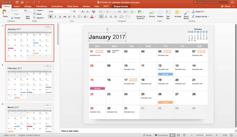 Free Calendar 2017 Template for PowerPoint