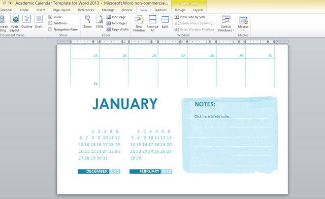 Academic Calendar Template For Word 2013