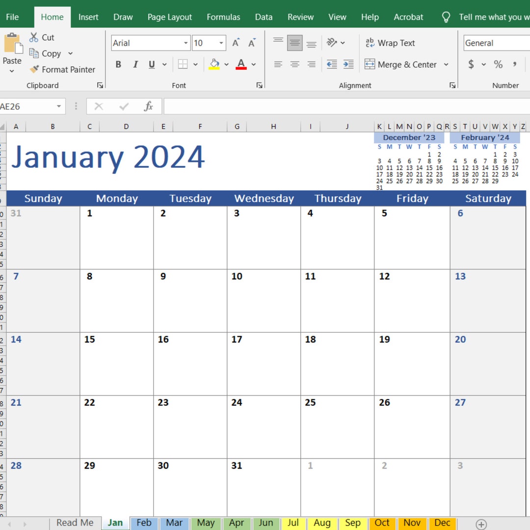 2024 Monthly Calendar Etsy