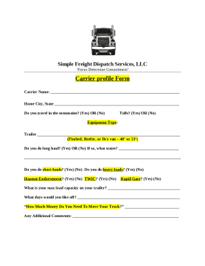 Carrier Profile Form Fill Online Printable Fillable Blank pdfFiller