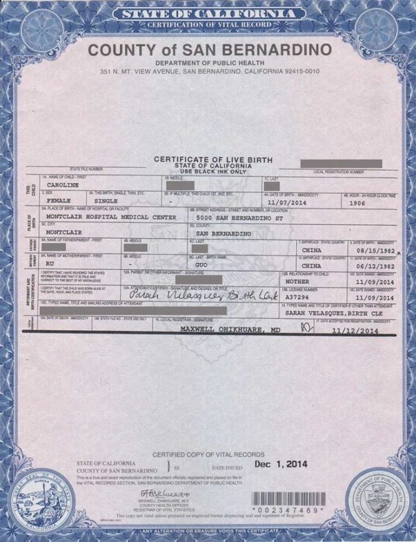 Translation of Birth Certificate US California I Tranlanguage