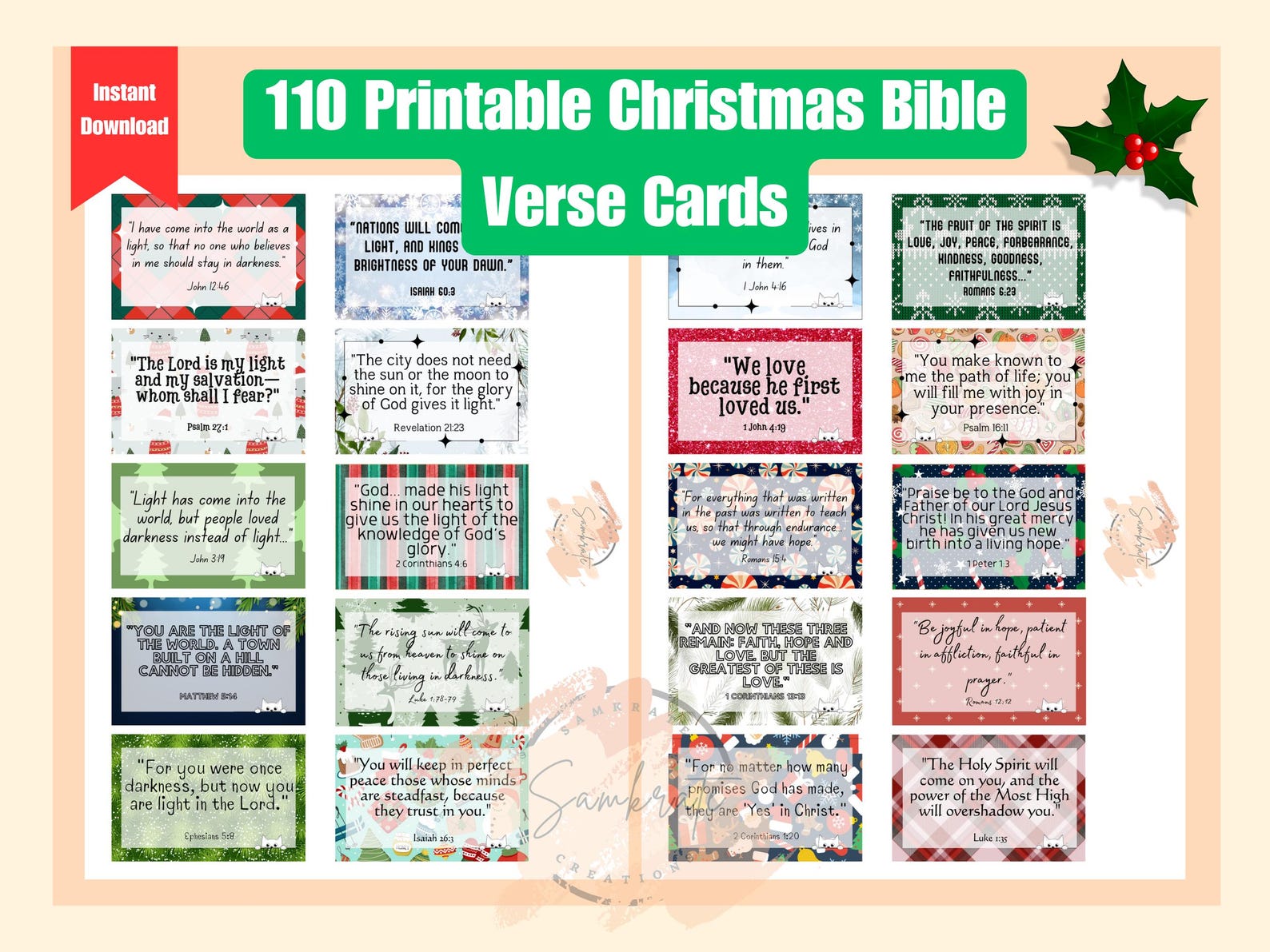 110 Christmas Bible Verse Cards Printable Scripture (PDF) Etsy