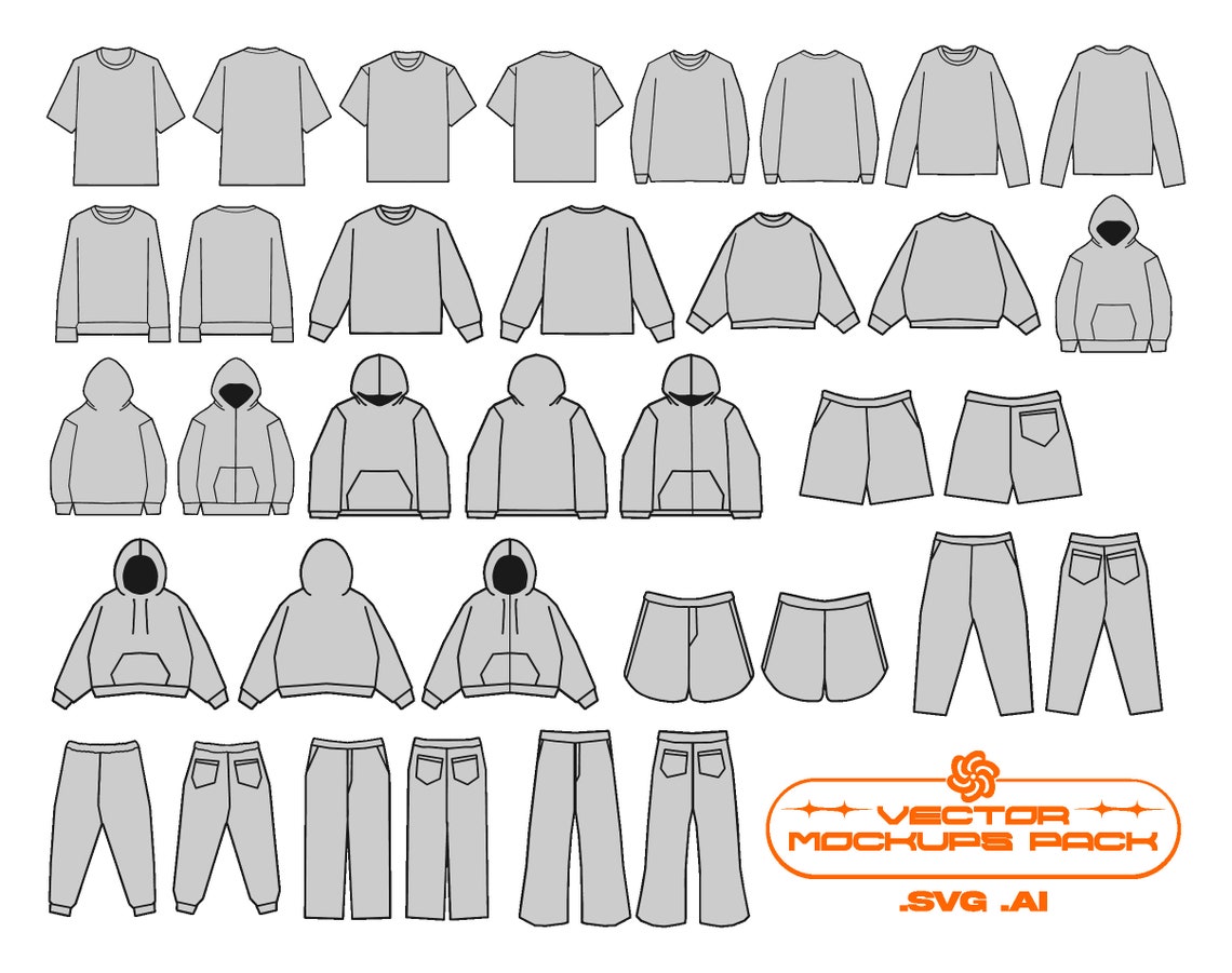 Streetwear Clothing Vector Mockup Bundle Fashion Flat Design Template
