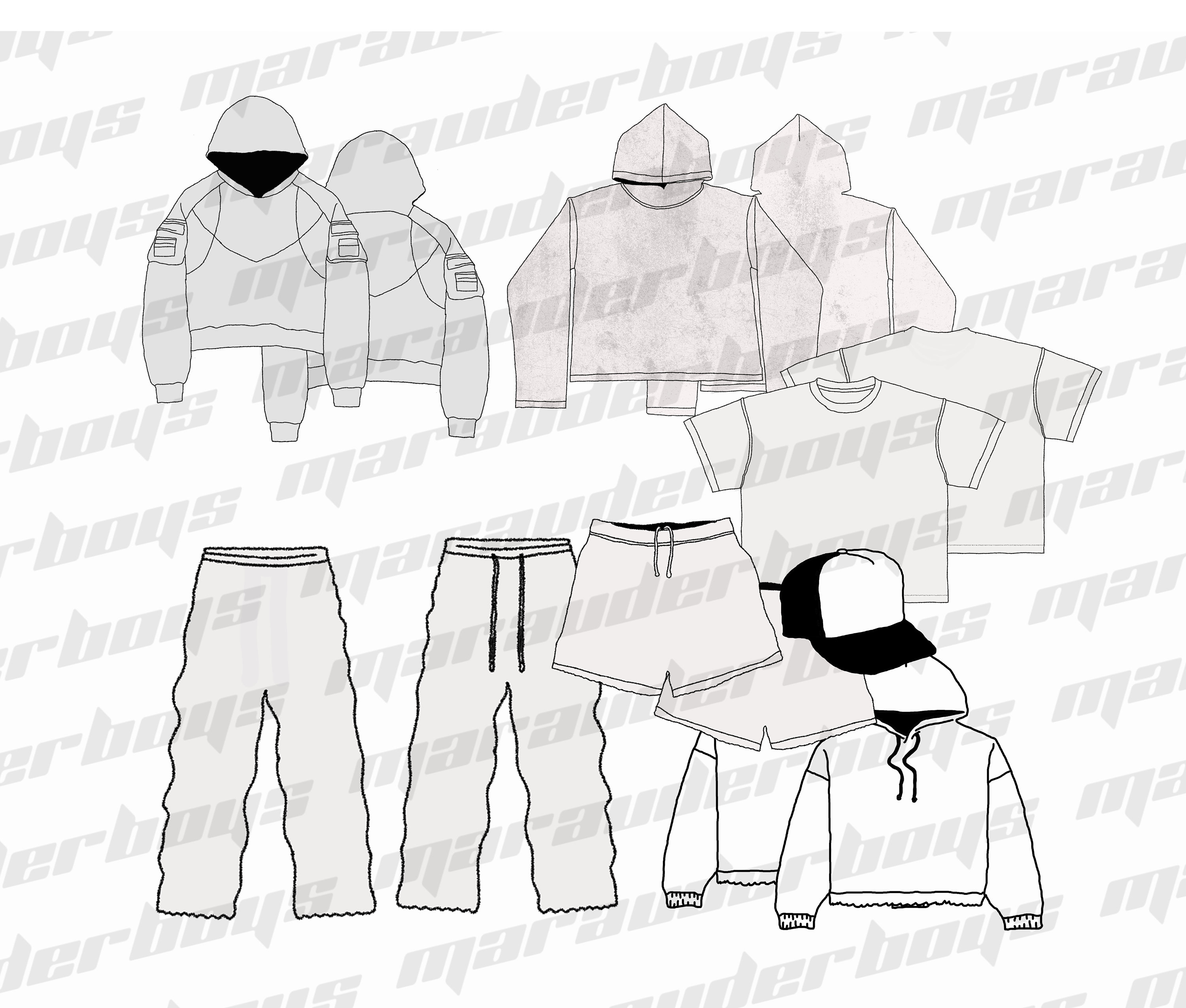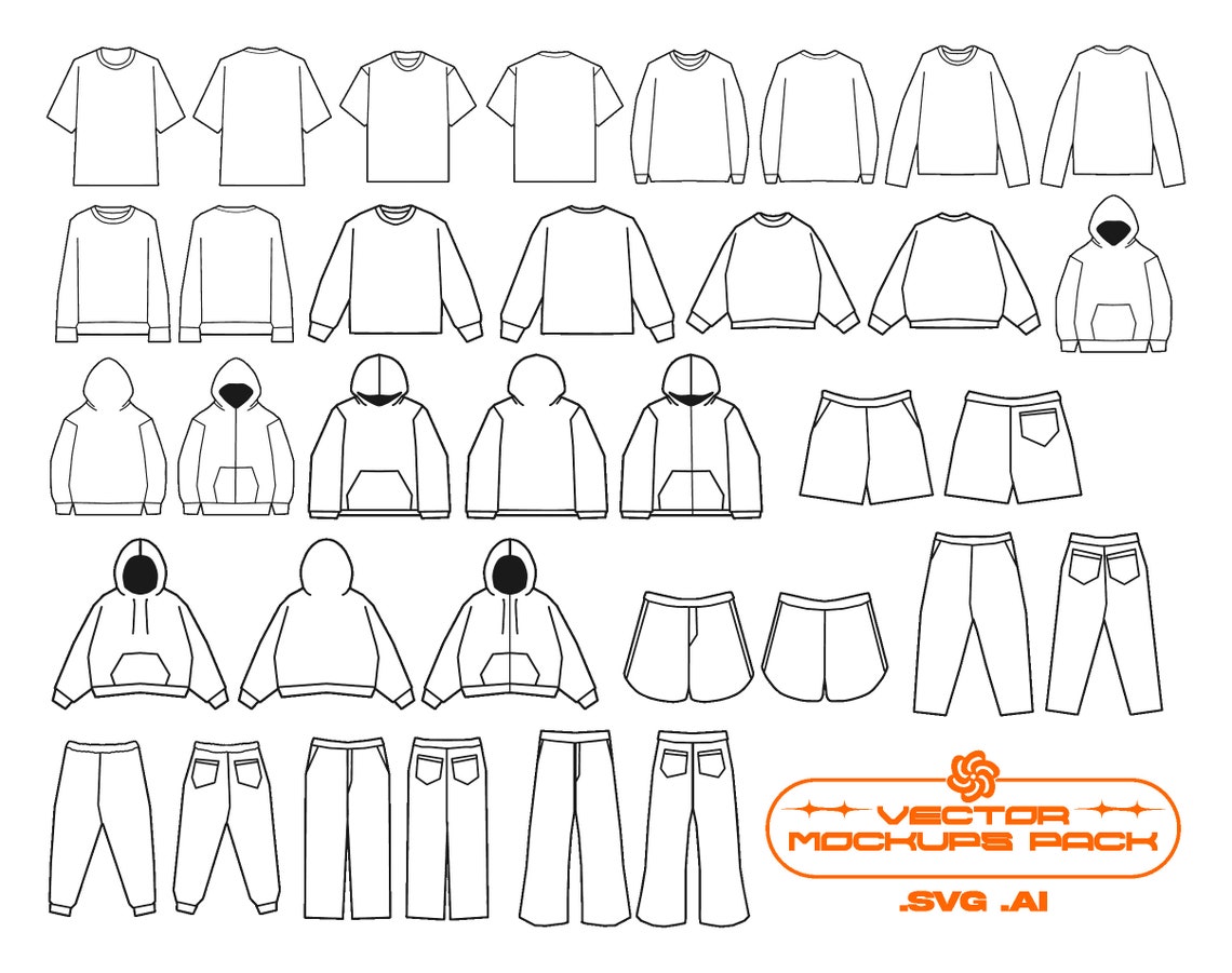 Streetwear Template Mockup Flat Sketch Technical Drawing illustrator