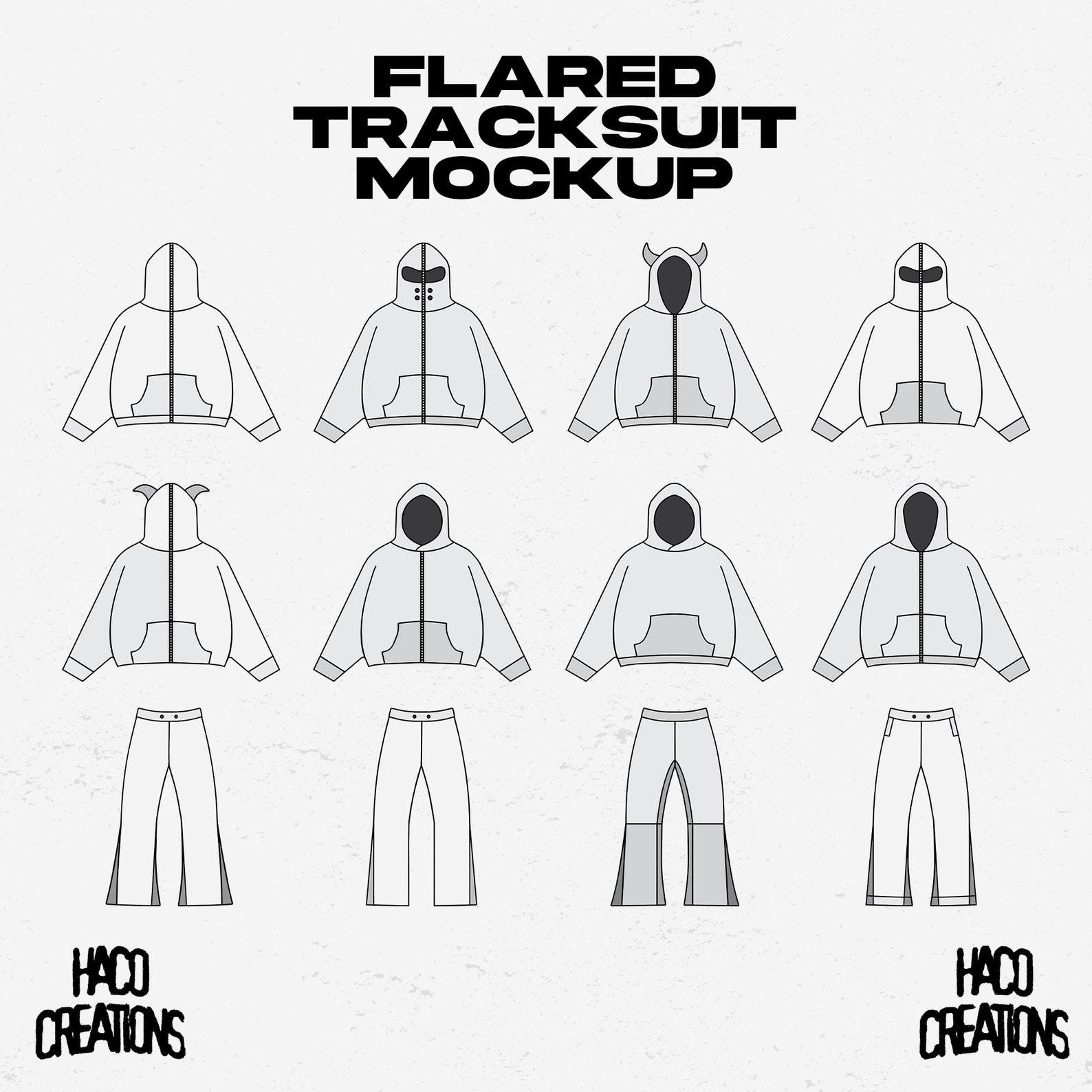 Streetwear Flared Tracksuit Vector Mockup Template for Clothing