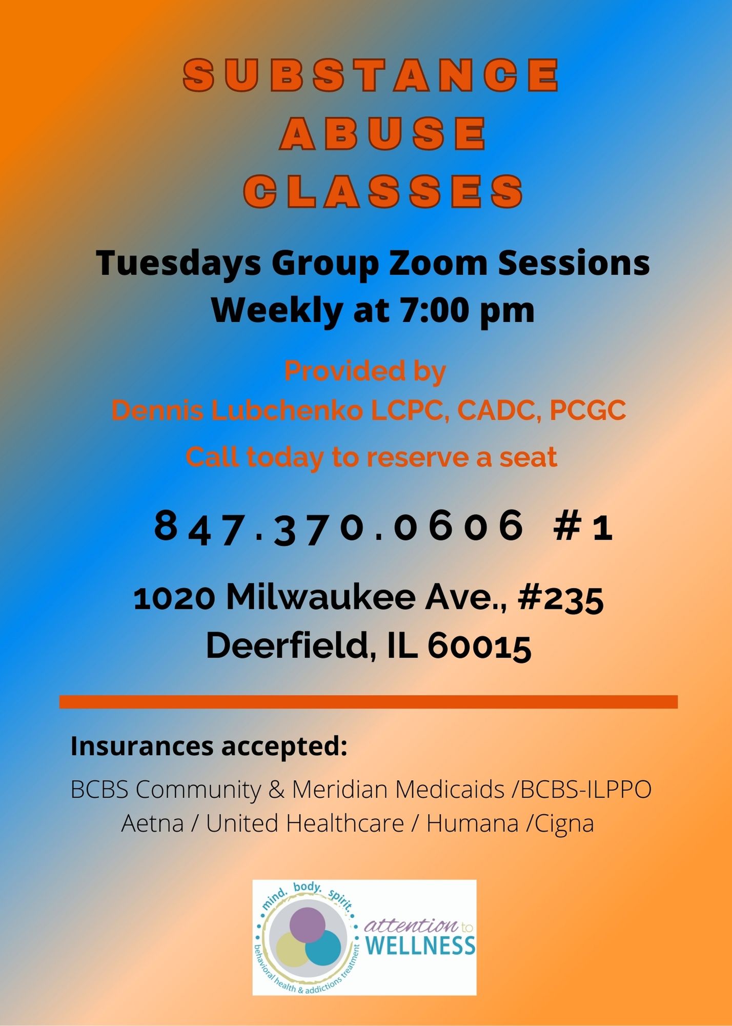 SUBSTANCE ABUSE VIRTUAL GROUP CLASSES ATTENTION TO WELLNESS Buffalo