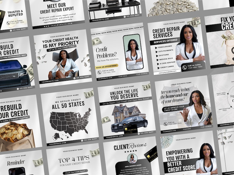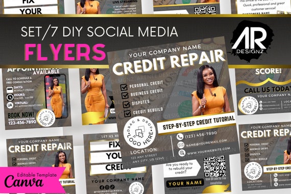 Set/7 Credit Repair Flyer Templates Diy Social Media Etsy