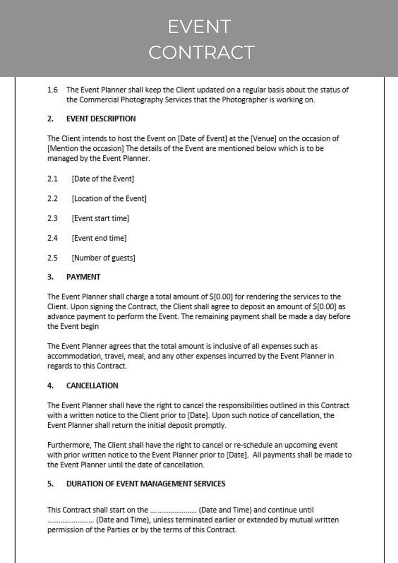 Event Contract Editable Template Contract Agreement Event Contract