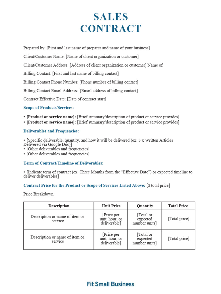 General Sales Contract Template PreWrite