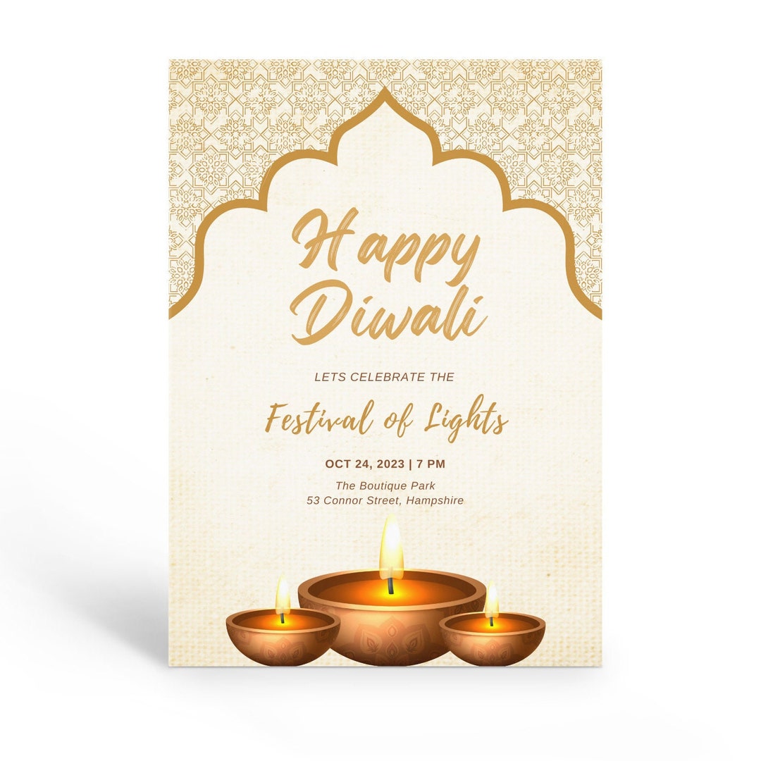 Editable Diwali Celebration Invitation Deepavali Party Invite Diwali
