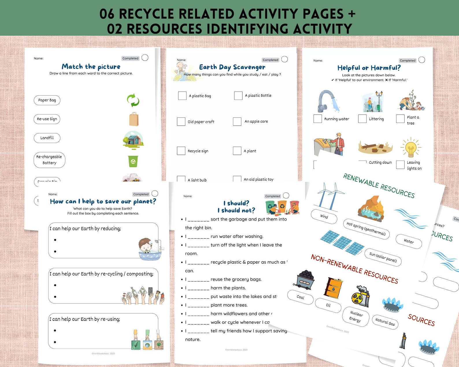 FREE Activities Worksheets / Earth Day / Environment / Recycling