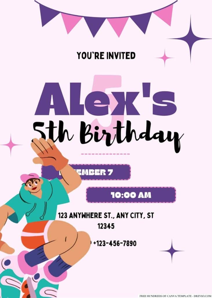 Polka Dot Roller Skate Birthday Invitation Editable Canva