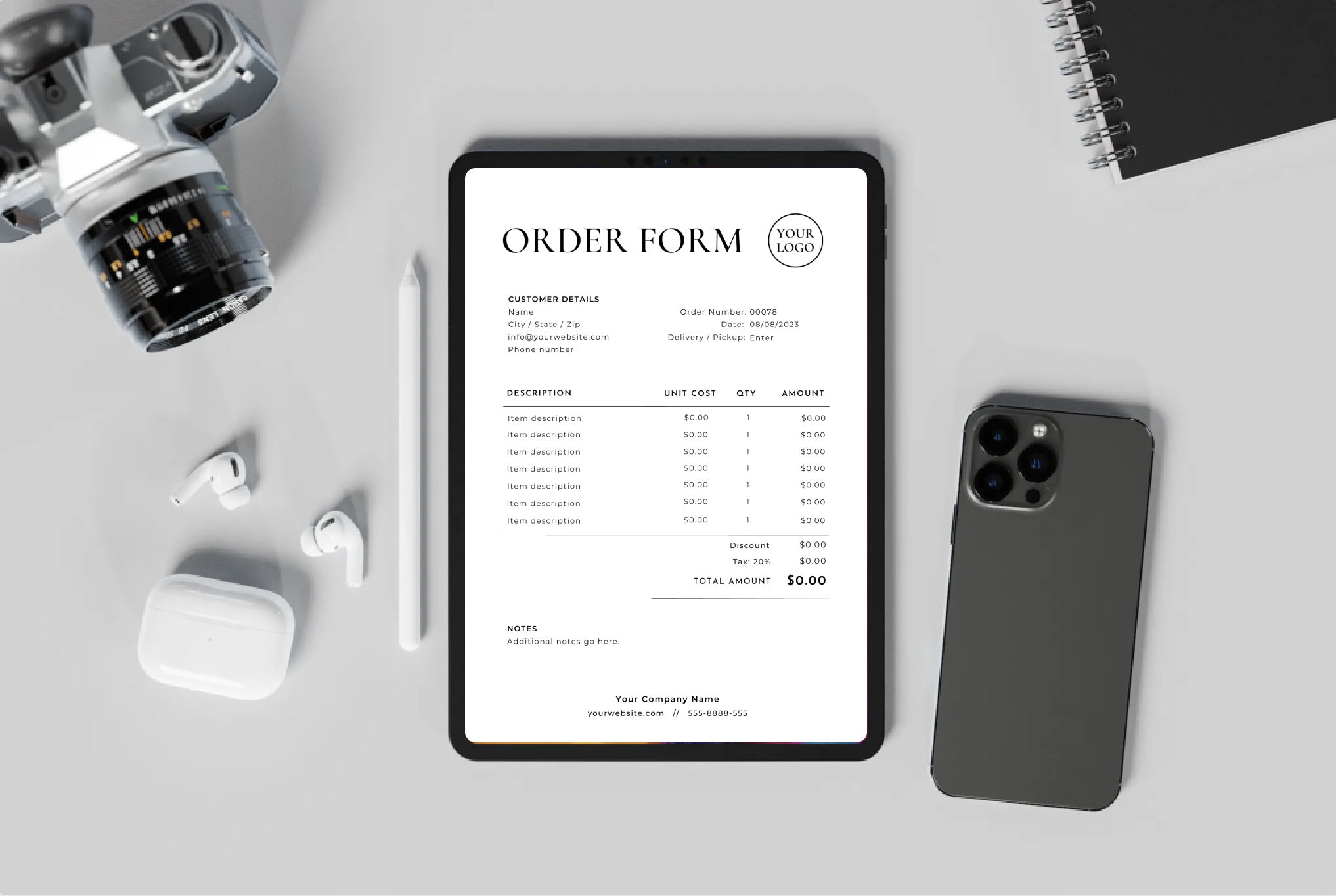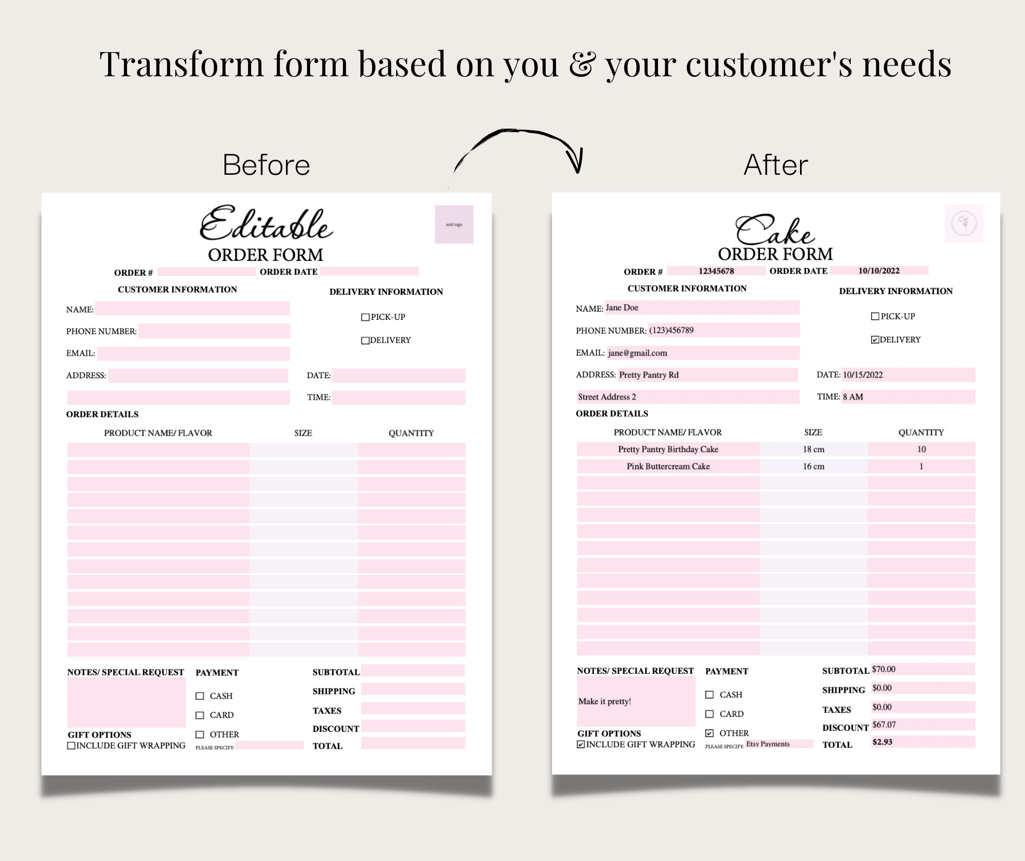 Order Form Template Editable Pdf/word/excel/google Docs/google Sheets