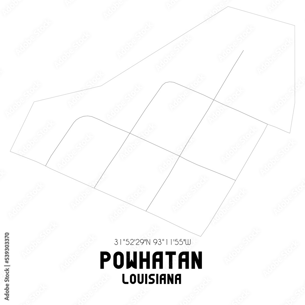 Powhatan Louisiana US street map with black and white lines Stock