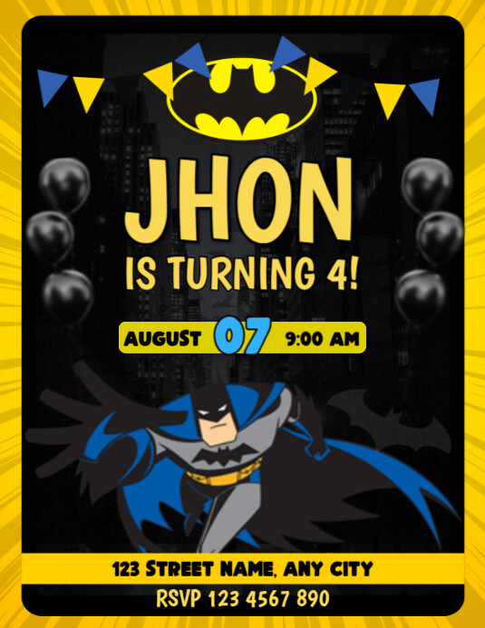 Editable Batman Birthday invitation Template PosterMyWall