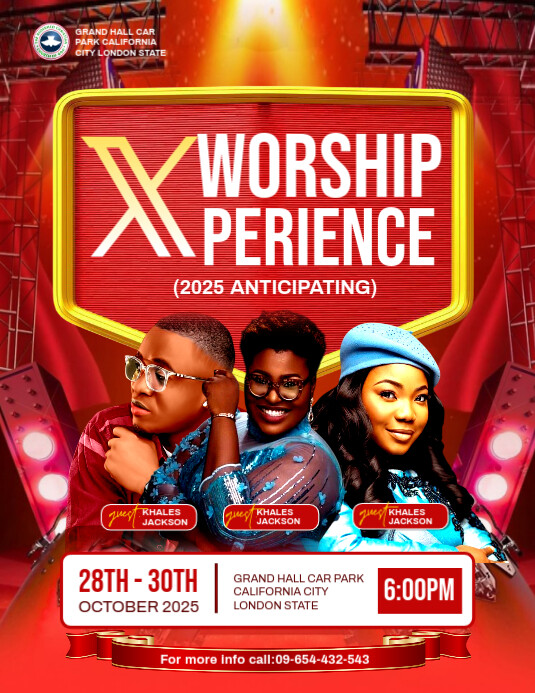 Red Maximalist Worship Experience Church Template Design Flyer (us